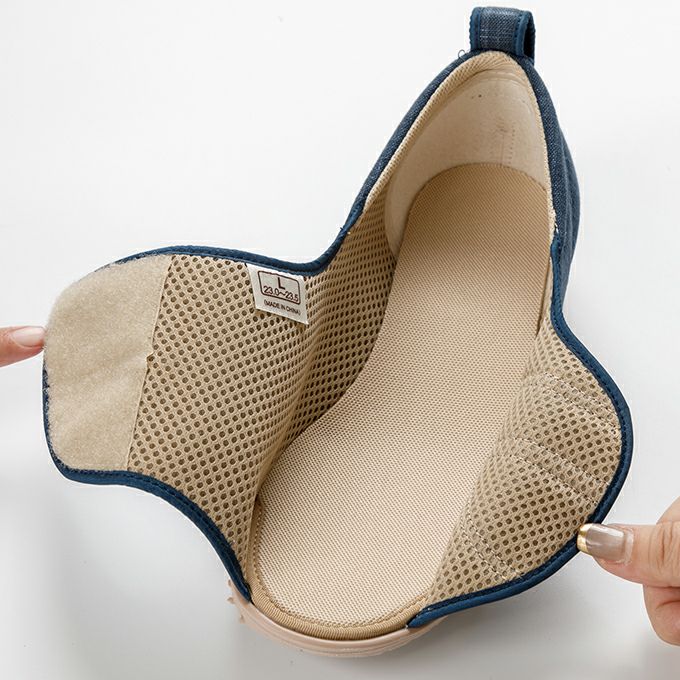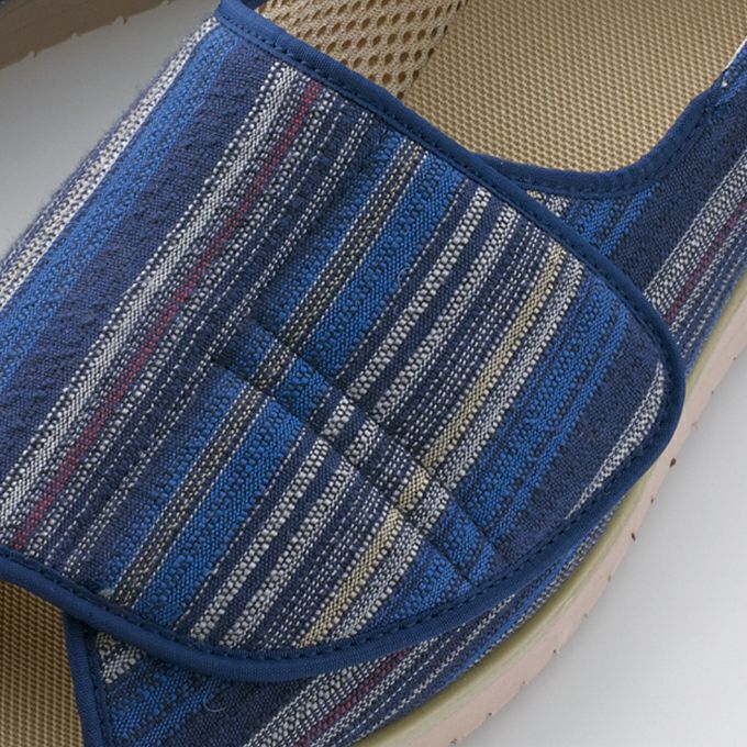 かすり風が足元を軽やかに。生地の風合いが優しく心に和みます。