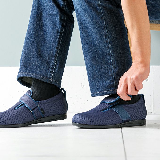 通気性の良いメッシュ生地で、足のムレや臭いが気になる方にもおすすめです。 高級感のある織柄は男女問わず、合わせやすい一足です。