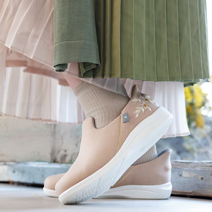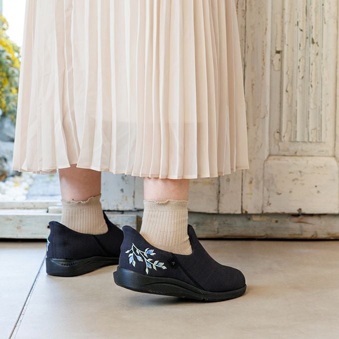 履きやすい 脱げにくい 脱ぎやすい。靴べらを使用した時のようにスムーズで履きやすい。靴底しっかり素材でちょっとした外出にも♪