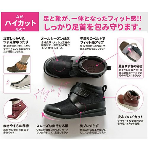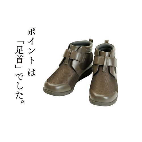 足や足首に不安がある方、歩行にふらつきがある方に最適。女性の足はとても繊細。大切な足を守るため、足と足首をしっかりと包み、「足と靴が一体化」となるよう設計しました。