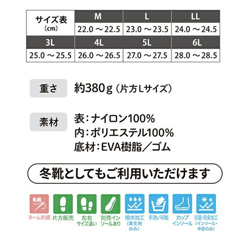 他の画像を見る 待望の防寒ブーツが新登場! 安心機能がたくさん、7Eワイドサイズなのでむくみのある方や、装具利用の方にも。 大きく開く防寒ブーツ2【7E】左足のみ ¥ 7,480 税込 お気に入りに登録する