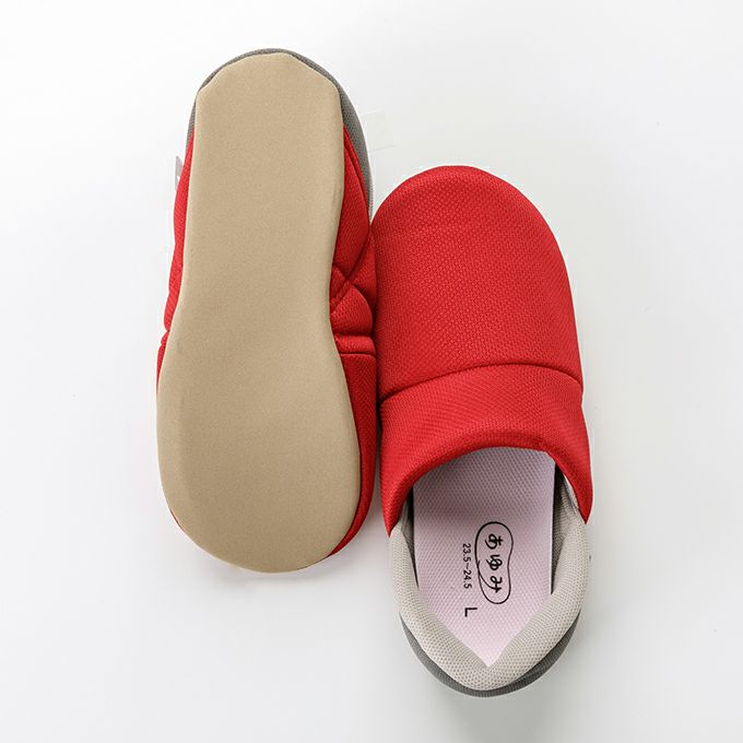 この商品は脱ぎ履きしやすく、踵を踏むことがありません。スリッパにだとスリッパにつまづいたり、足が滑る事があり危険な時もありますが、この商品はしっかりフィットして安全だと思います。厚手の靴下を履く方はワンサイズ大きい物が良いと思います。軽くて歩きやすいのでお勧めです。