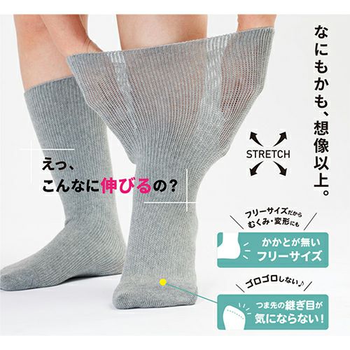 のびのび靴下のロングセラー。優しくのびてしめつけない。ギブスの上からも履けます。
