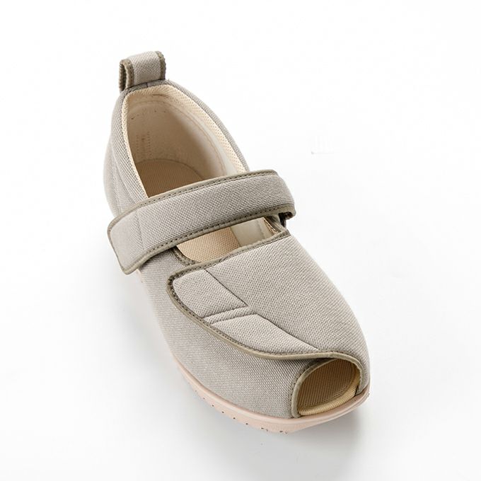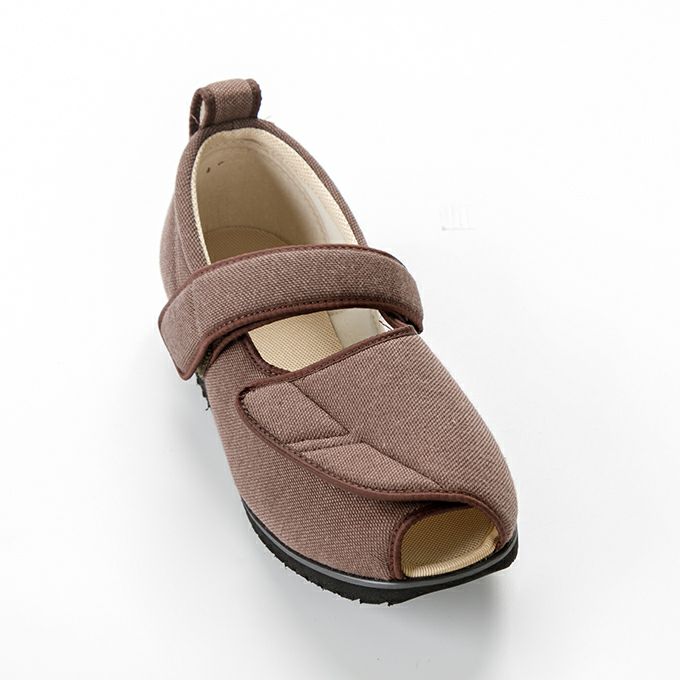 つま先が全開するとともに甲と足首2つのベルトが履き心地を安定させます。