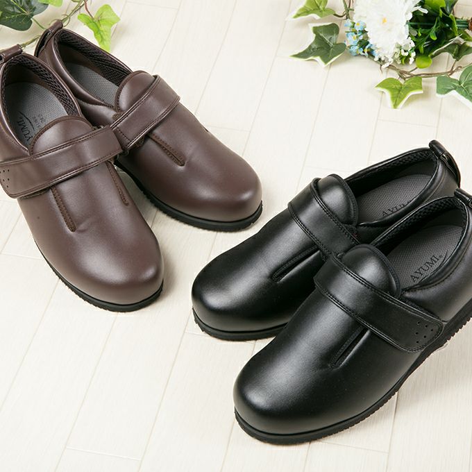 足当たりの良いソフトな履き心地が人気のダブルマジックII合皮が新しくなって新登場!シンプルな外出用ケアシューズで冠婚葬祭にも。