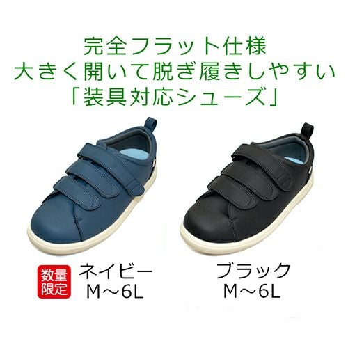 完全フラット仕様!大きく開いて脱ぎ履きしやすい「装具対応シューズ」