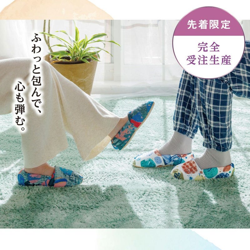 お部屋での定番「エスパド」をベースにしたアートモデル。 安心の履き心地はそのままに、感性がときめく彩りをお楽しみください。