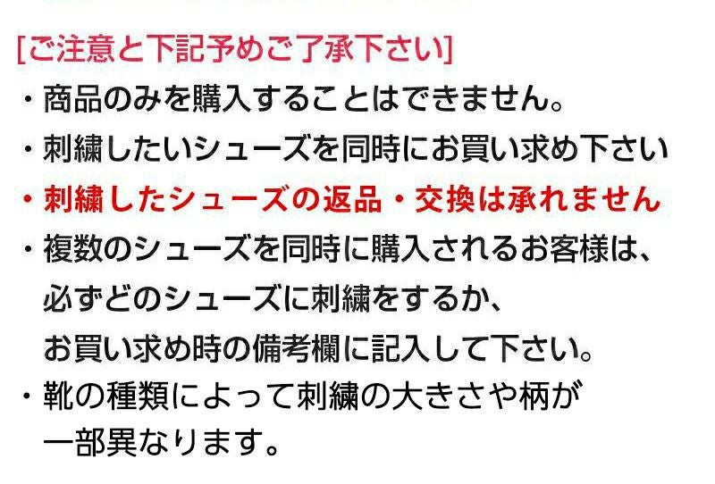 刺繍したシューズの返品・交換は承れません