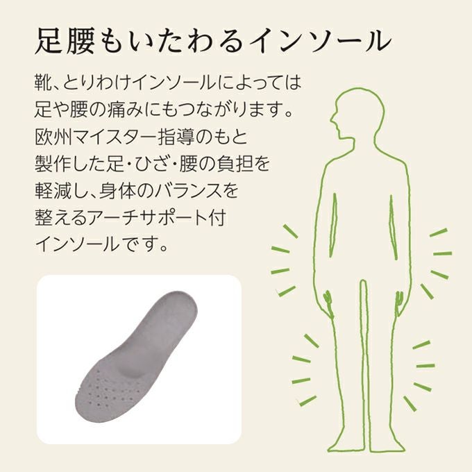 欧州マイスター指導のもと製作した足・ひざ・腰の負担を軽減し、身体のバランスを整えるアーチサポート付インソール