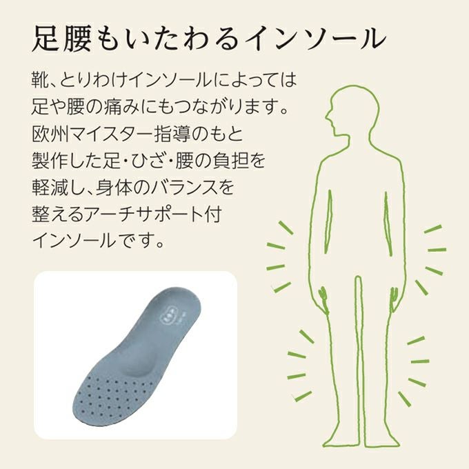 欧州マイスター指導のもと製作した足・ひざ・腰の負担を軽減し、身体のバランスを整えるアーチサポート付インソール